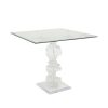 Dine in glory with the classy Holland Dining Table Silver & Frosted. The glossy tabletop is held upon shiny silver legs and frame with engraved designs. It’s a solid rich dining table that will furnish the room and seat your guests in grace. Available in rose gold or silver legs with black, frosted or white tops. Also available as a highboy.