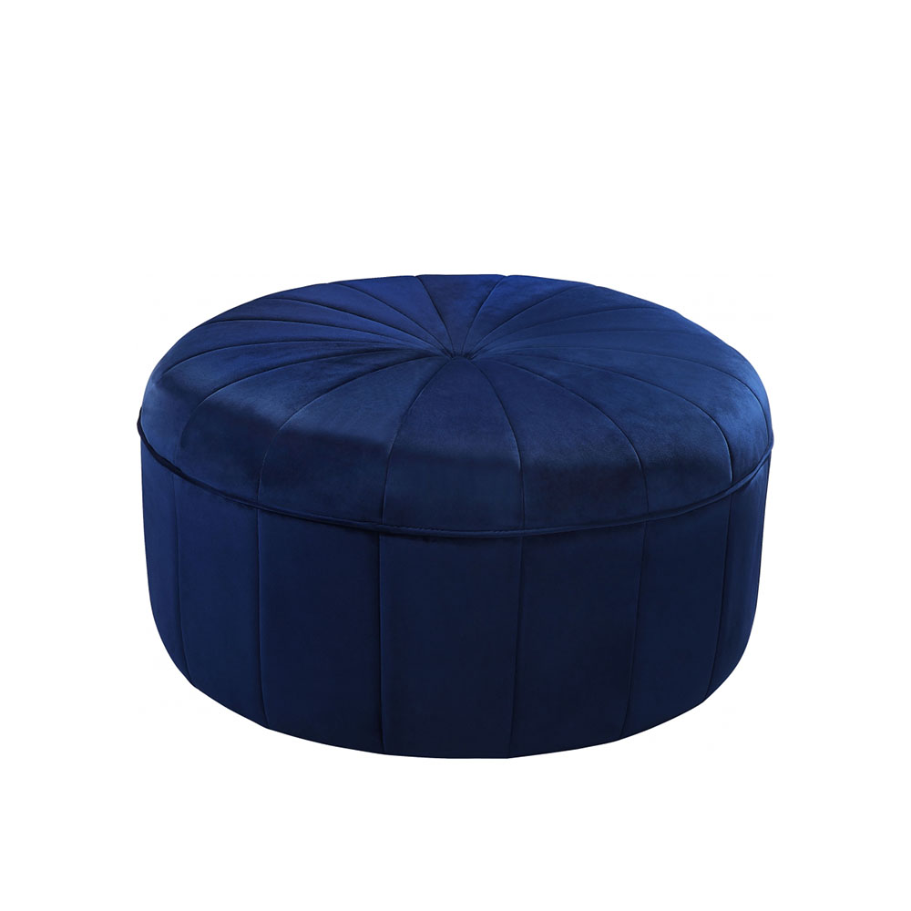 The Gower Ottoman Navy is a charming piece of furniture that adds extra spice to your lounge. This round plush ottoman is designed with rich velvet upholstery and pinwheel tufting, giving it special flair and comfort. Available in blush, gray, navy and sky blue.