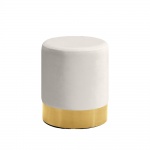 Add a finishing touch to your event with this rich Grove Ottoman Cream. With royal velvet cushioning and a polished gold base, this round ottoman will create majestic and homey atmosphere. Use for extra seating or simply a footrest. Available with a gold base in black, blush, cream, gray, green and navy and with a silver base in black, gray and navy.