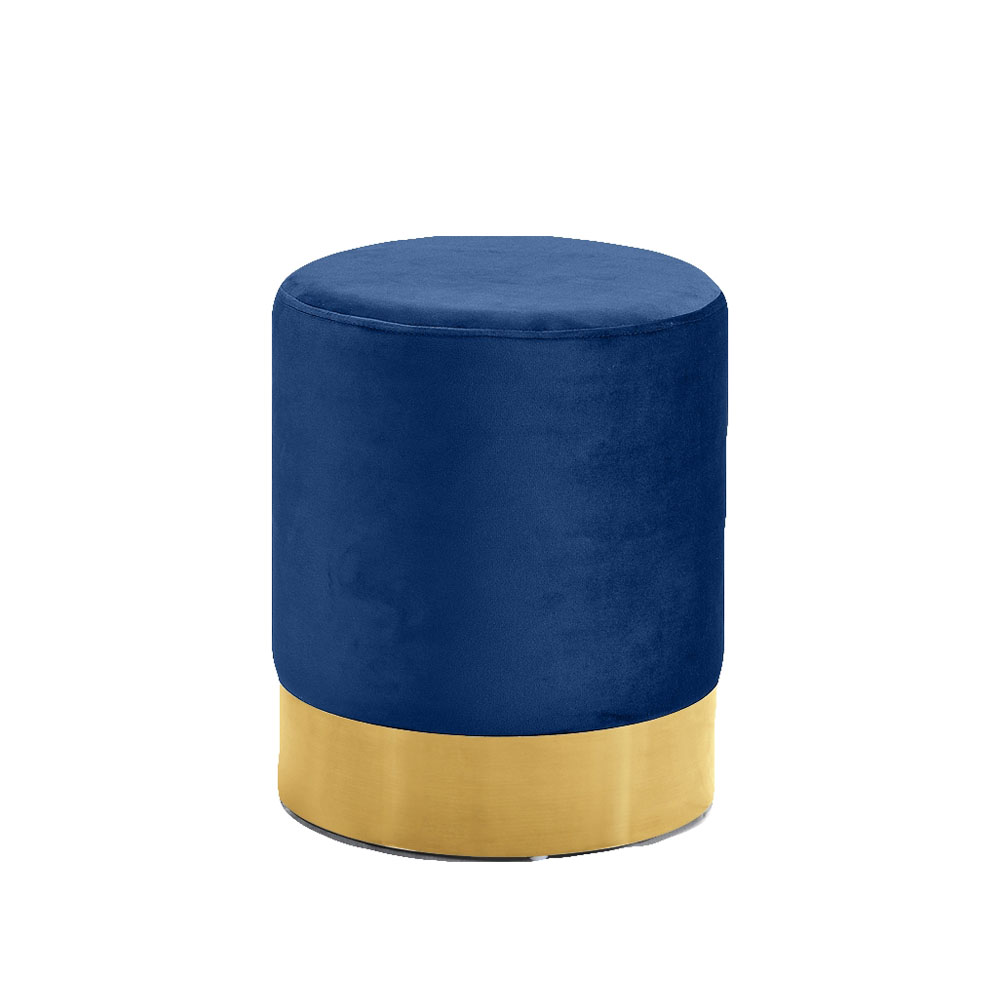 Add a finishing touch to your event with this rich Grove Ottoman Navy. With royal velvet cushioning and a polished gold base, this round ottoman will create majestic and homey atmosphere. Use for extra seating or simply a footrest. Available with a gold base in black, blush, cream, gray, green and navy and with a silver base in black, gray and navy.
