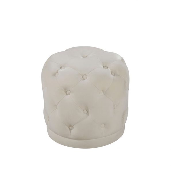 Rich and elegant, comfort and style. The Ronan Ottoman Cream is elegantly upholstered with royal plush velvet and designed with deep button tufting covering its entire surface. It’s round with height and completely cushioned, inviting guests to sink in. Black, blush, cream, gray, green, navy and sky blue.