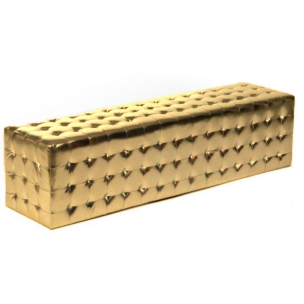 Your lounge will not be the same without this versatile and chic Tufted Bench Gold. The rectangular shaped bench is an attractive addition, featuring sleek button tufted faux-leather. Be practical without compromising on comfort. It’s perfect for anywhere in the room to use as seating, footrests or a side table. Available in black, gold, silver and white.